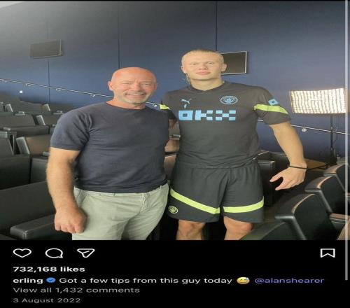 阿兰-希勒在社交媒体为哈兰德送上祝贺,写道:“干得好,埃尔林。你的数据太惊人了,伙计。继续保持你的出色表现。”
